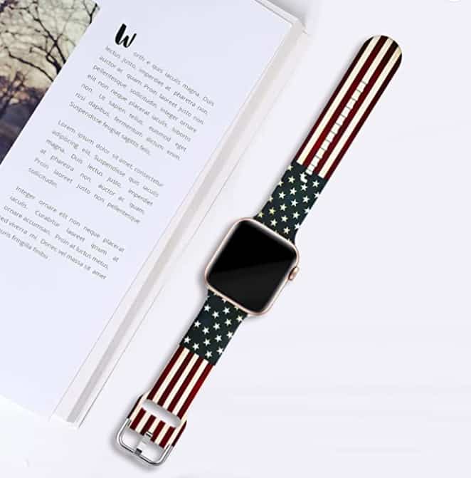 Ready, set, accessorize! Complete your July 4th outfit with this stylish american flag Apple Watch band. Compatble with Apple Watch series 1-7.