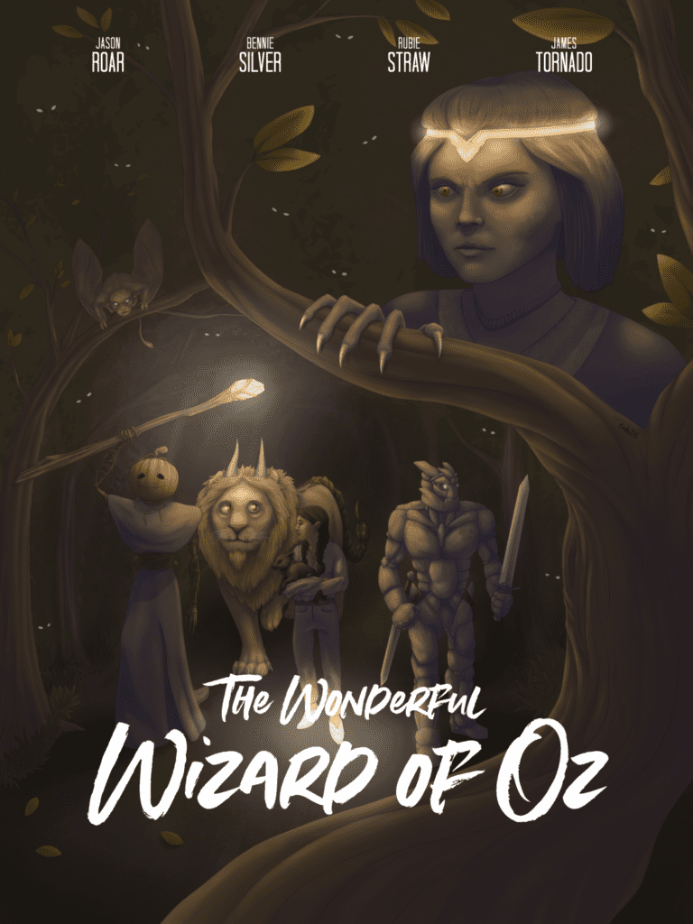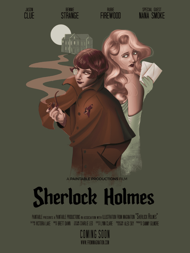 That fictional client’s project is to create a dramatic movie poster for their newest blockbuster film! Students have complete creative control over the brief, genre, characters, style, and more.