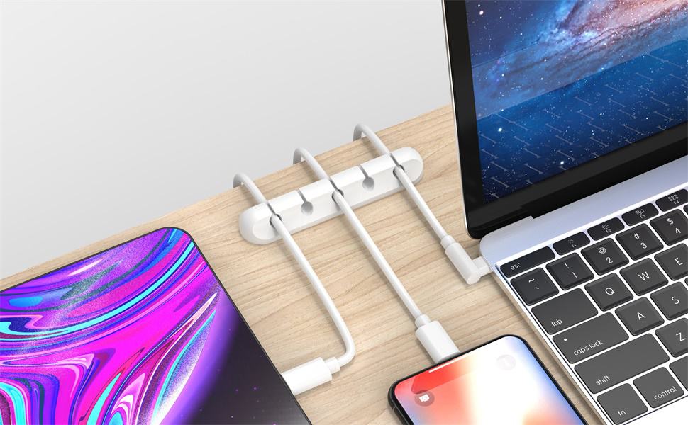 This cord organizer is the unsung hero of home offices. Small, discreet, easy to mount everwhere and keeps your desk tidy.