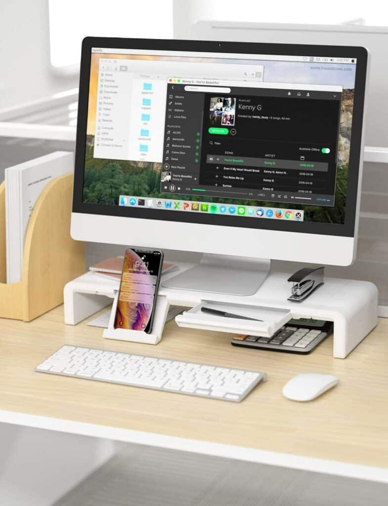 Improve your posture by raising your monitor to eye level, and get some extra organizational space as a bonus with this monitor stand.